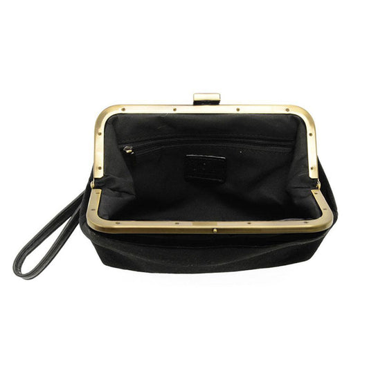 Black Velvet Vive Frame Lock Crossbody Wristlet