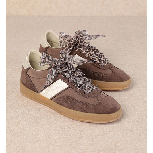 Tan Leopard Aman Glitter Lace Up Canvas Sneaker