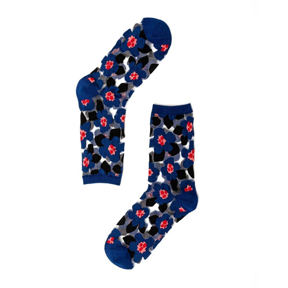 For the minimalists who still want a pop of color and print, our Bold Blue Floral sheer sock is your perfect accessory. Geometric style blue florals with unexpected elements of red, pink and black accents give this sock a distinctively edgy vibe. Pair with loafers for an effortless cool girl look.