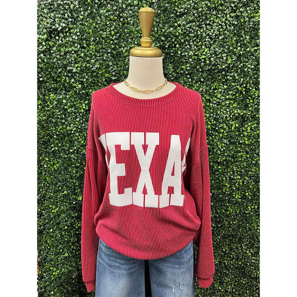 Texas Comfy Graphic Sweatshirt in an oversized waffle knit. SO soft and cozy!