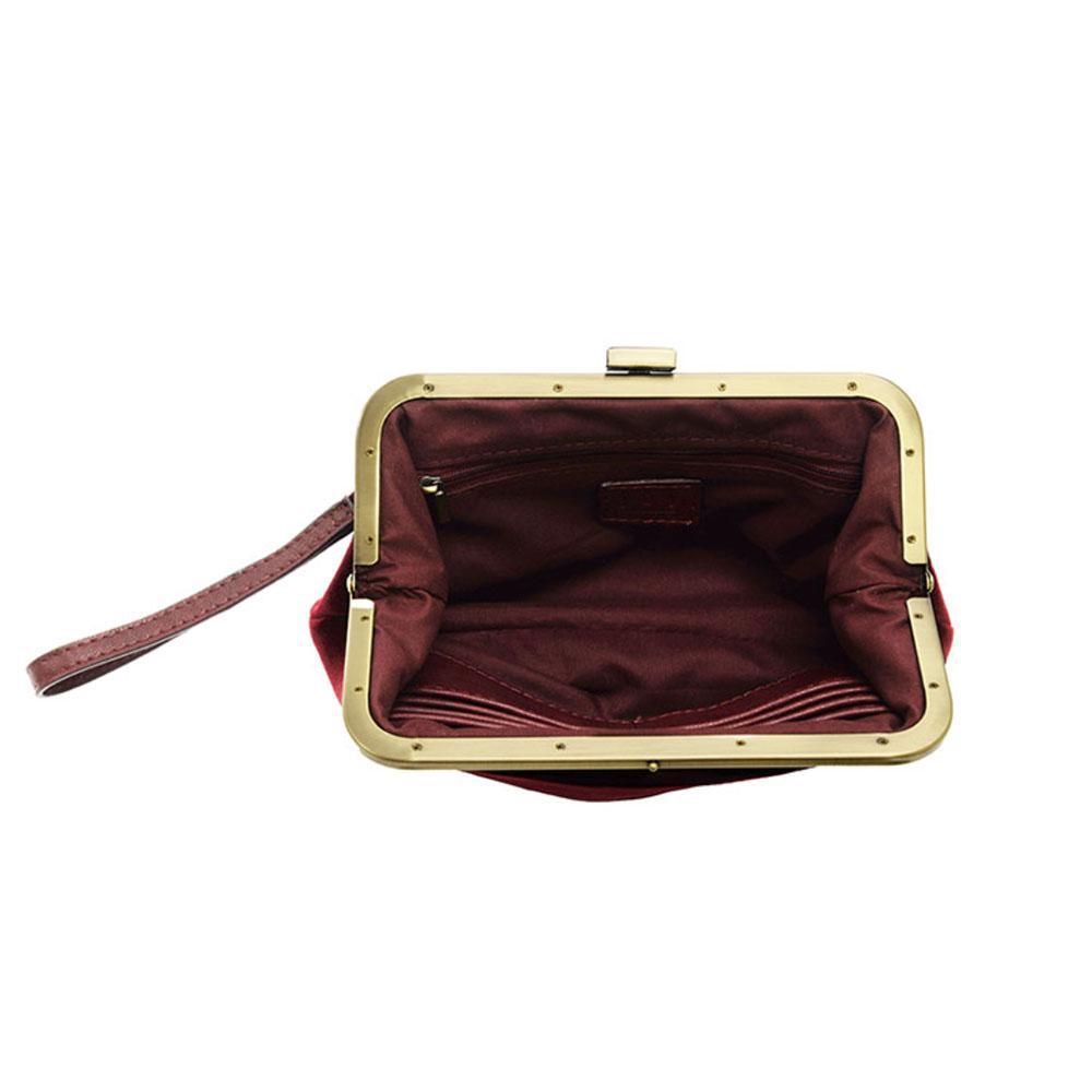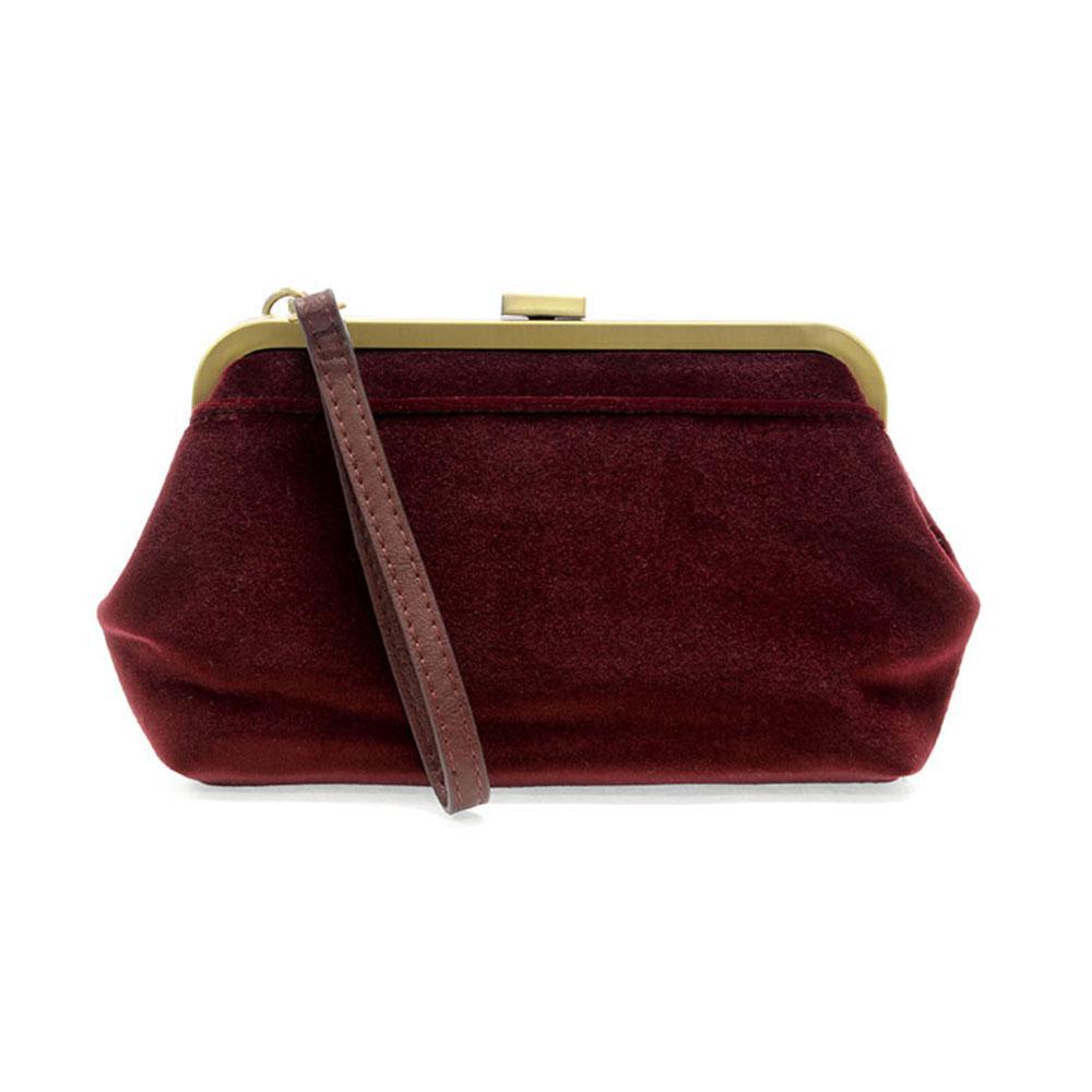 Burgundy Velvet Vive Frame Lock Crossbody Wristlet