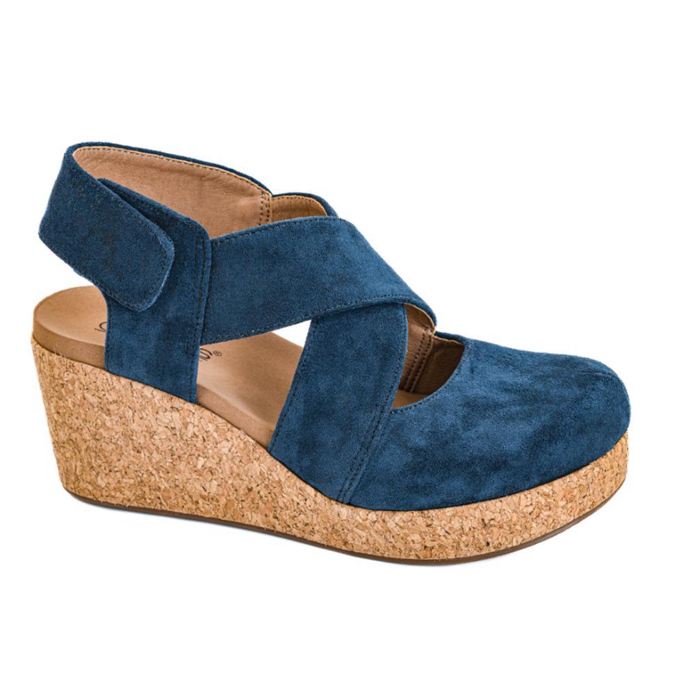 Case Closed Navy Faux Suede Wedge Corkys Sandal