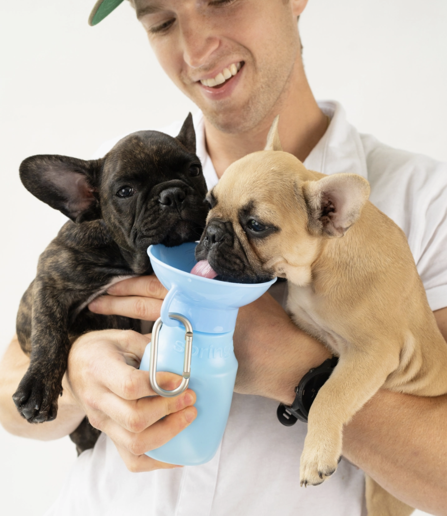 The perfect solution for keeping your dog hydrated on-the-go. Designed for your dog to drink fresh water from the attached bowl without wasting a drop. Simply squeeze the bottle with one hand to fill the bowl and release to drain the excess water back in. The leak-tight innovative bottle includes a carabiner for easy clipping to your backpack, bag, or leash — ideal for hikes, beach visits, road trips, and walks around the neighborhood.