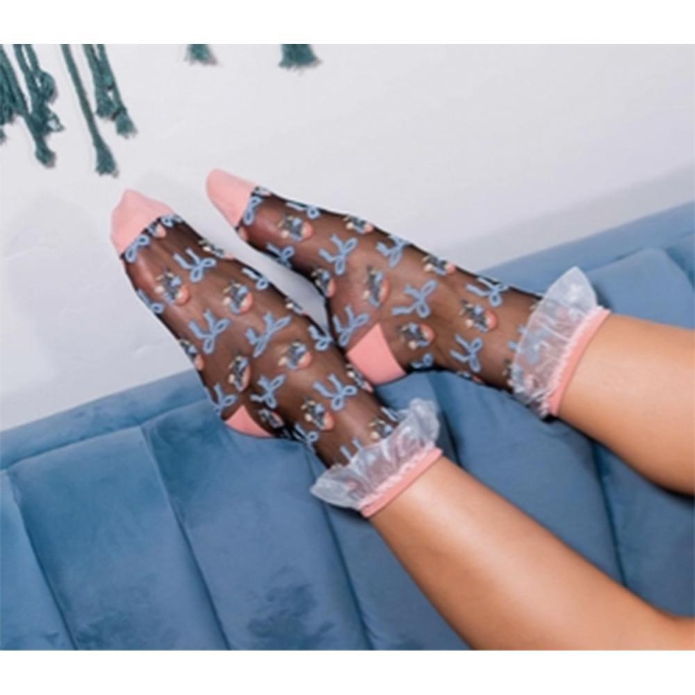 Floral Bow Ruffle Black Sheer Ankle Sock