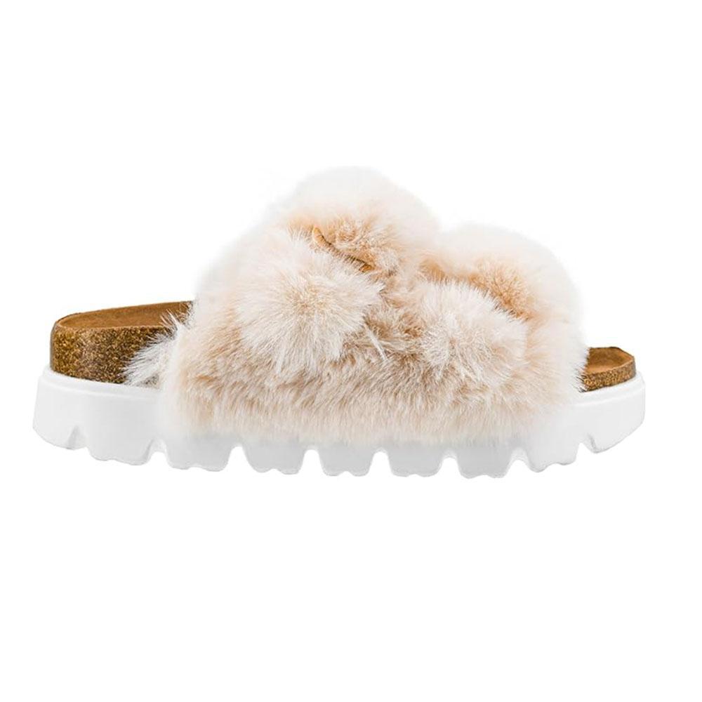 - Plush ivory fur upper adds a cozy and luxurious touch to your look.