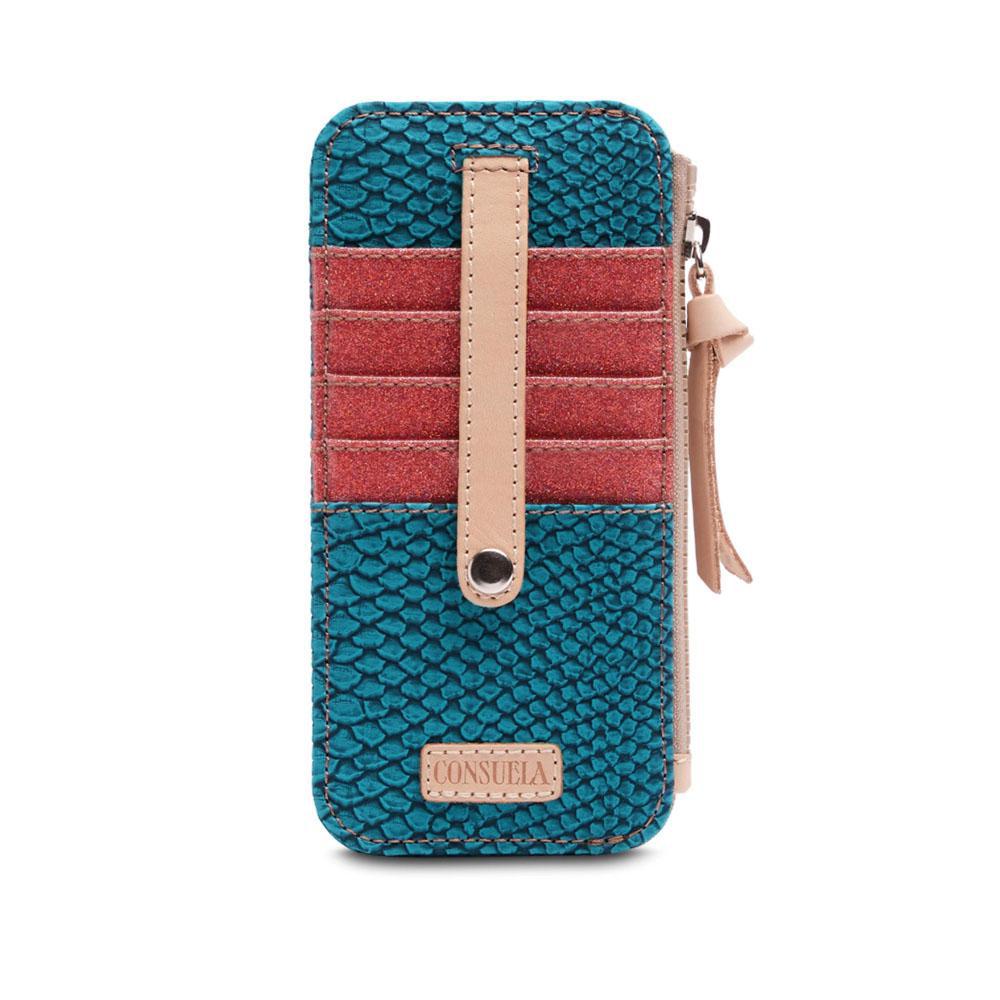 Keeping things light and easy, the card organizer is perfect for credit cards and folded bills. This colorful wallet’s snap-closure and zipper compartment provides security while you take on the day.