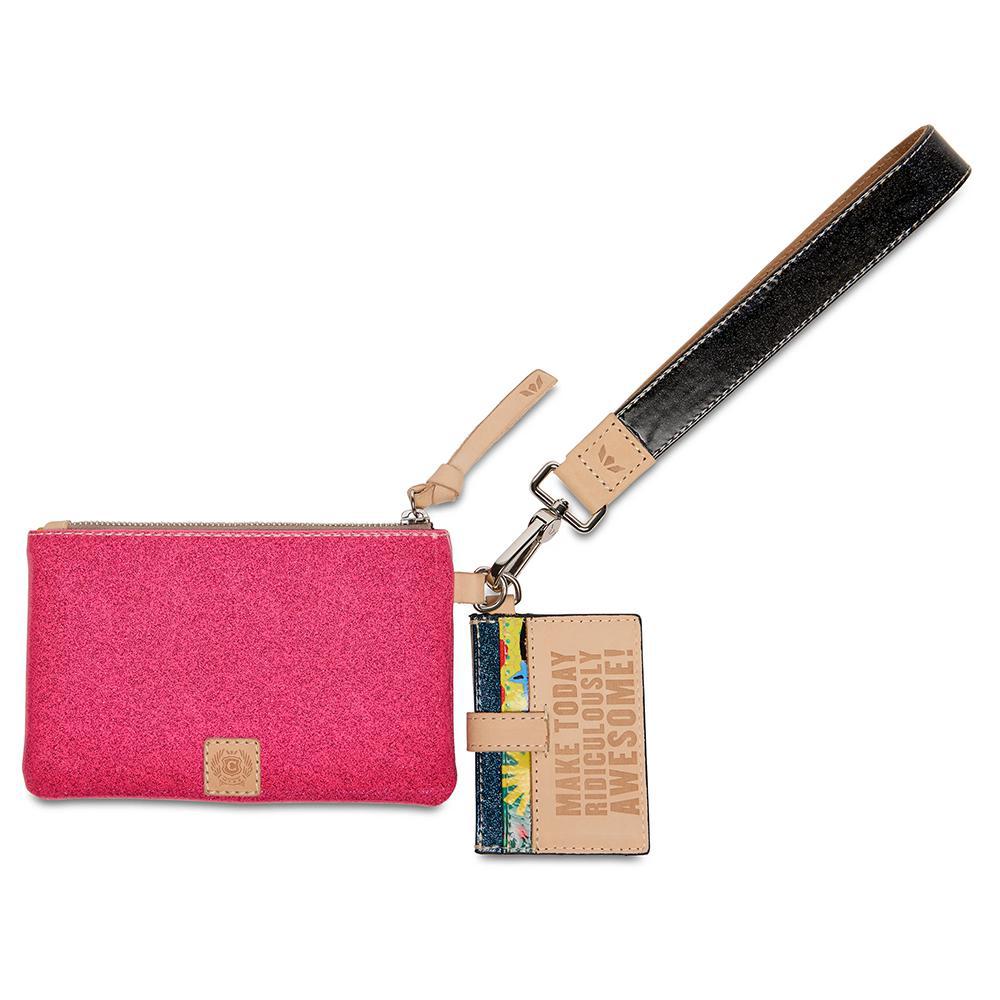 The Combi, a combination of on-the-go accessories, is a new way to carry your keys, cards, and the small stuff at all times. This colorful wristlet wallet includes a pocket pouch, secure card slot wallet and fits comfortably around your wrist- ready for your next journey.