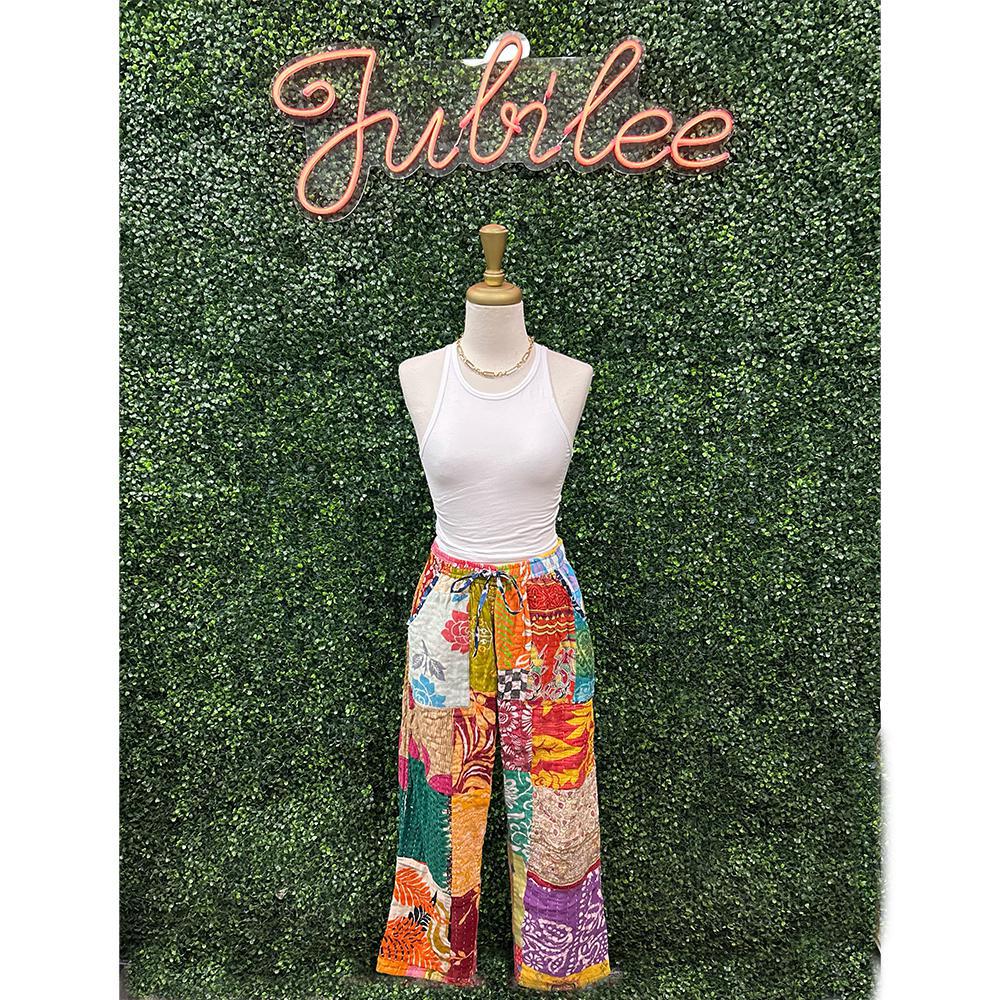 Kantha Drawstring Pants - One of a Kind Patterns