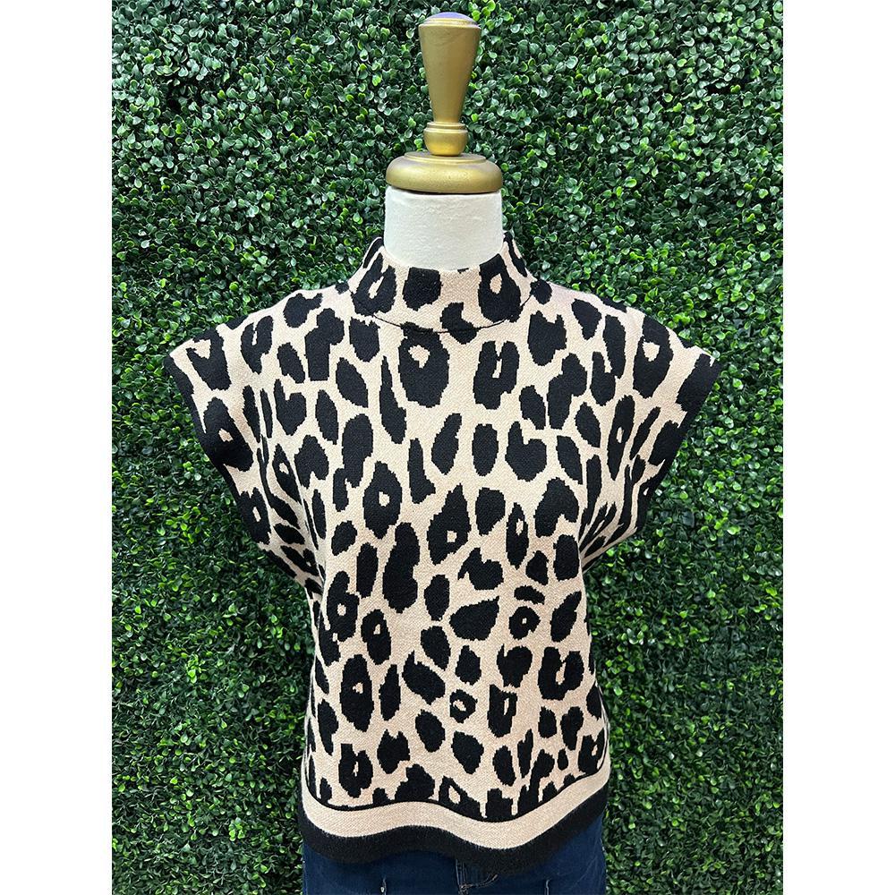 Kitty Leopard Mock Neck Sweater Top