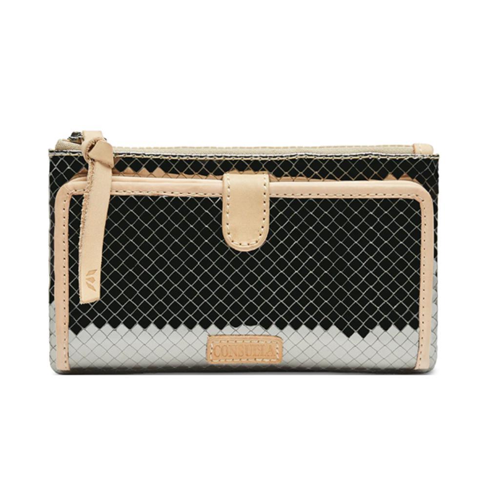 Our Slim Wallet carries cards and cash without weighing you down. Open the snap closure to reveal an ID window pocket, 12 card slots, and 4 slide pocket compartments in this versatile bifold.