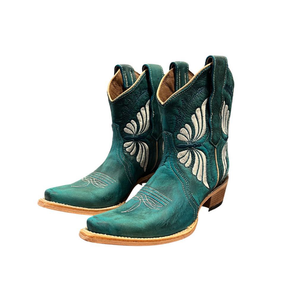 L6248 - Women's Embroidery Aqua Butterfly Ankle Boots