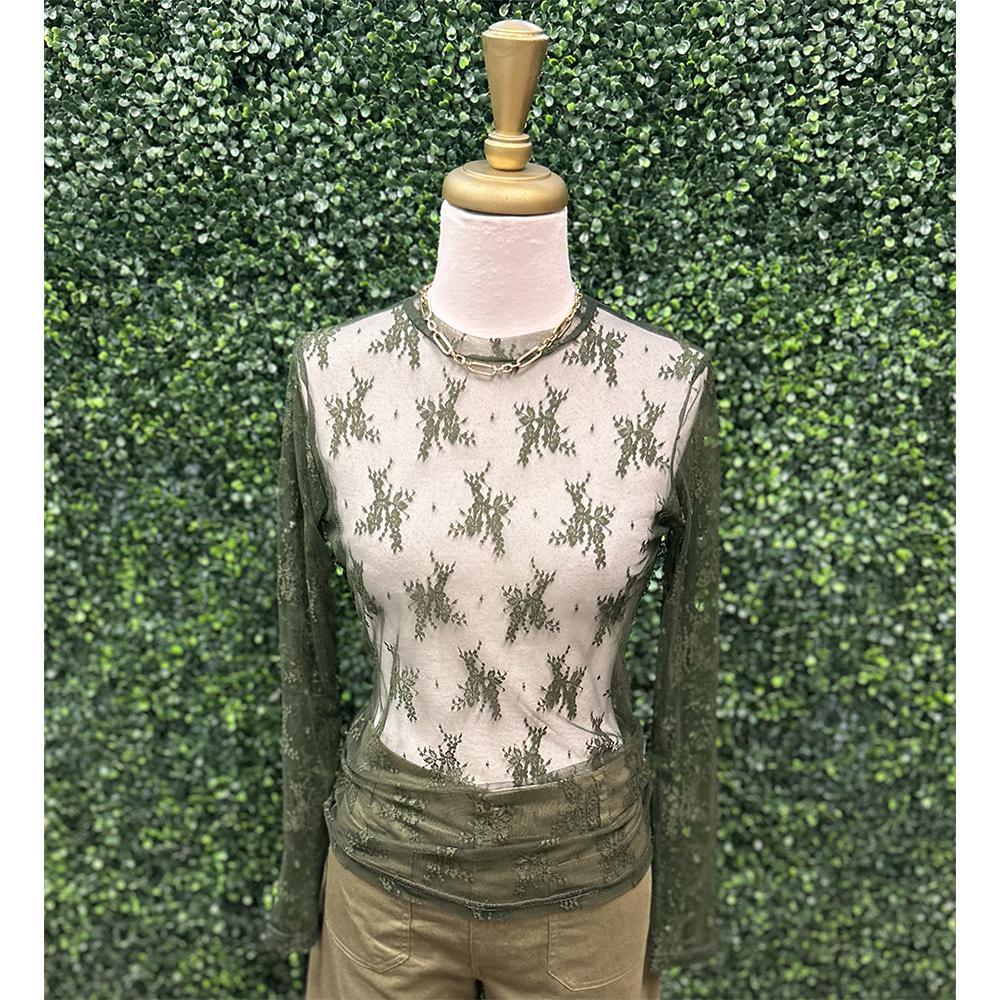 Margo Olive Lace Mesh Top