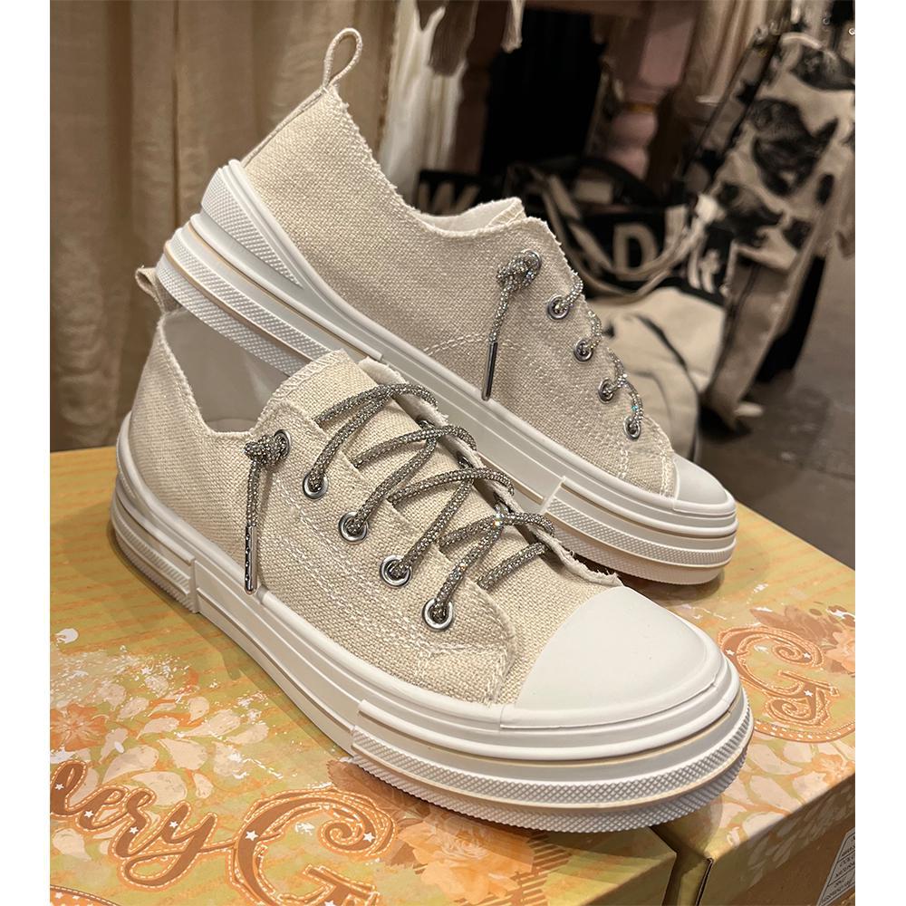 Natural Aman Glitter Lace Up Canvas Sneaker