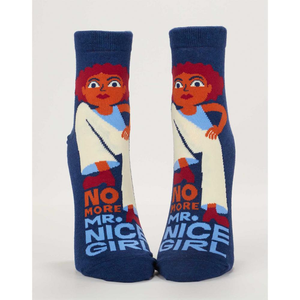 The time has come and gone for Mr. Nice Girl. Now it's time to get real. Women's shoe size 5-10. 50% combed cotton, 48% nylon and 2% spandex.