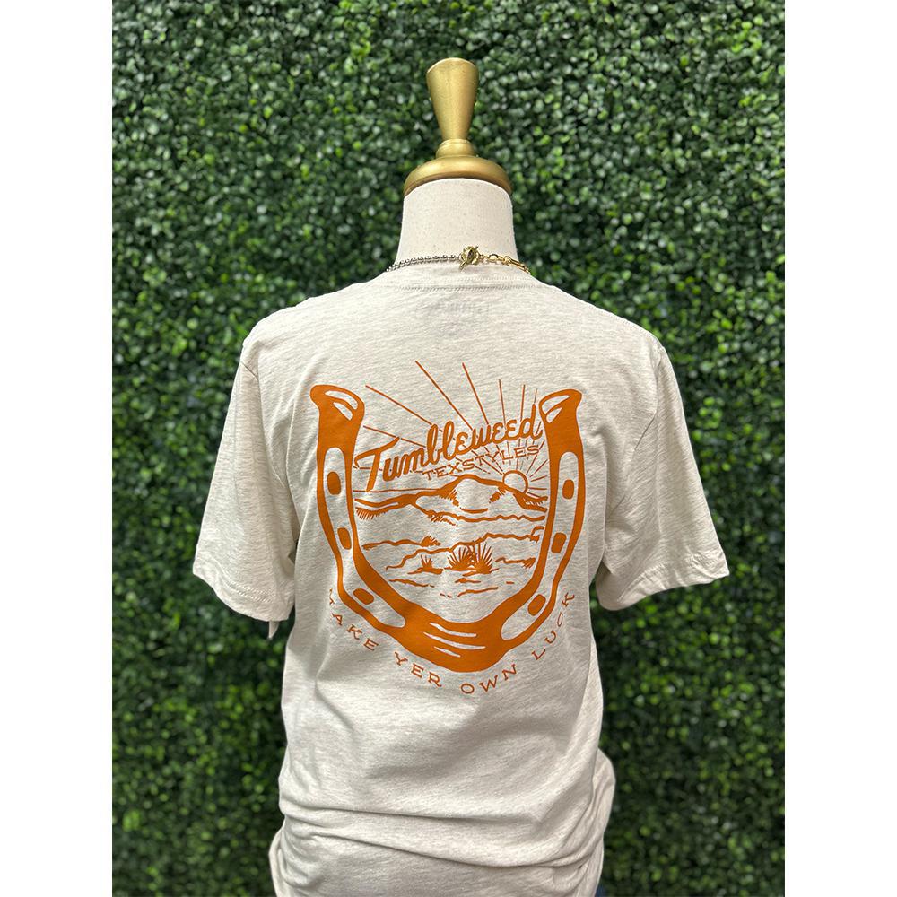 Sometimes luck comes upon you, and sometimes you've gotta make your own. For any ol' ranchero, grab this tee and hit the open range or open road for the next adventure.