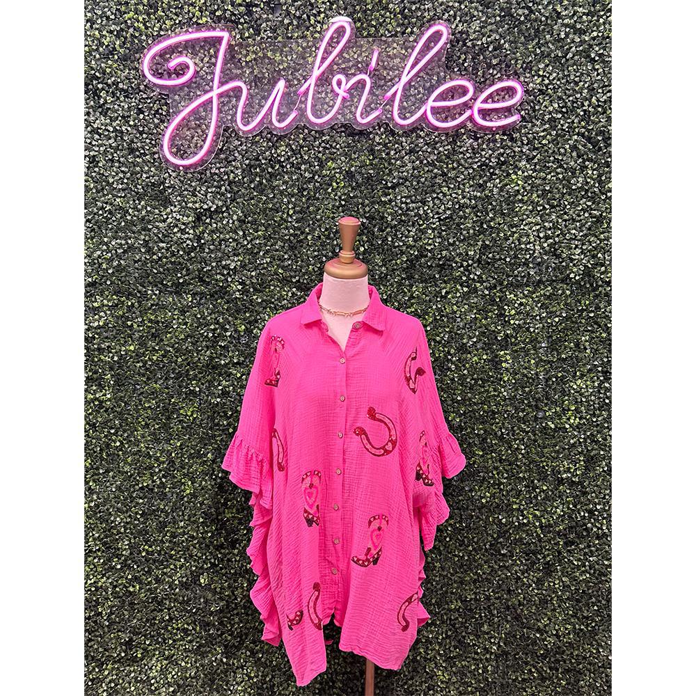 Pink Boots & Horseshoe Sequin Top